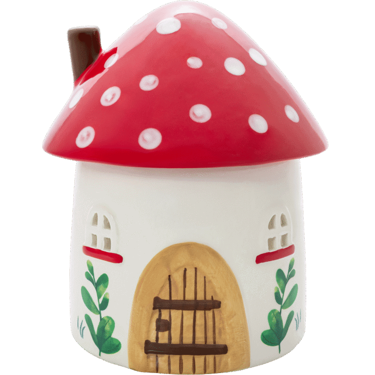 Llena tu hogar de magia con nuestro Quemador Seta Casa, un quemador de cerámica grande y encantador con techo de seta y detalles de cuento.